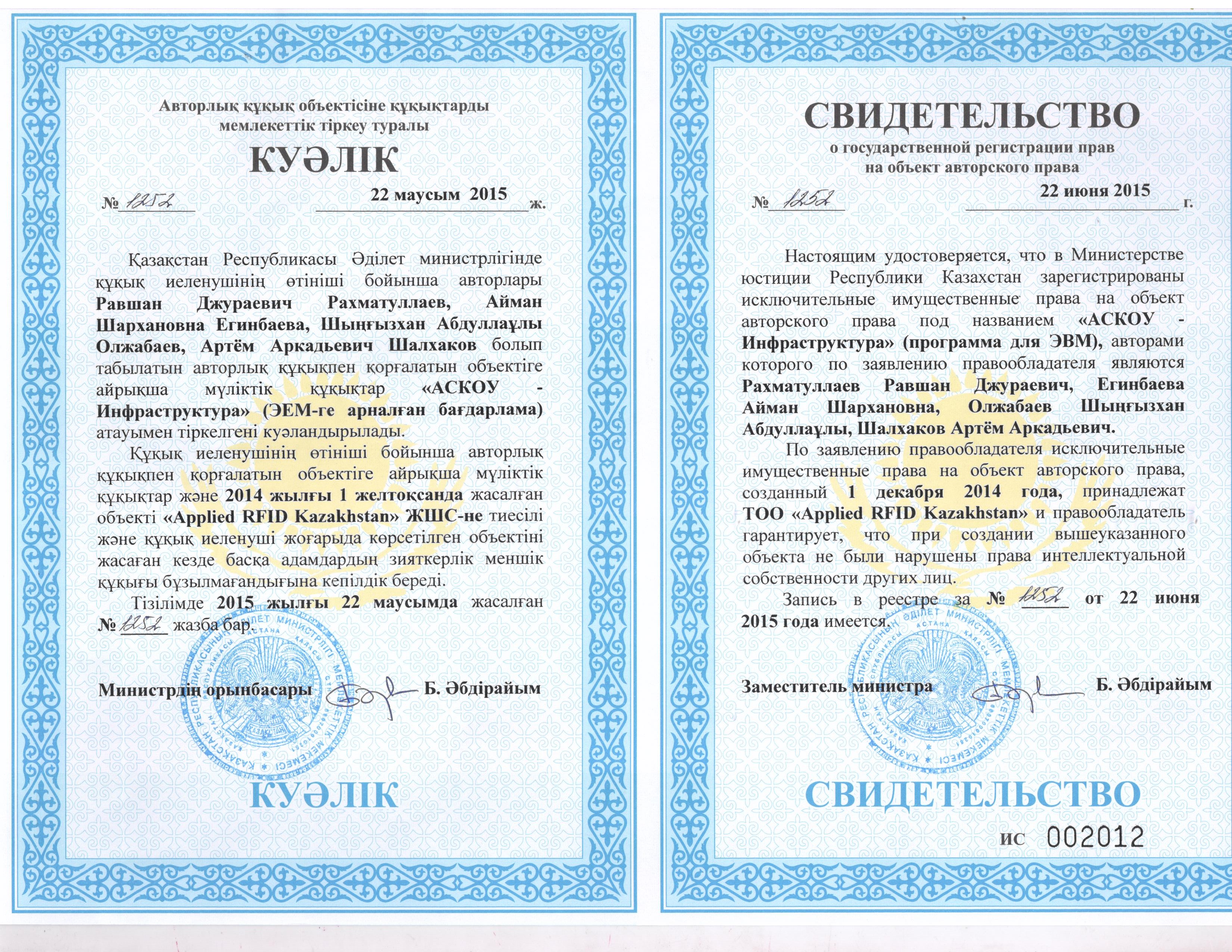 | Свидетельства, сертификаты, презентации и т.п. | Свидетельство_20141110_АСКОУ-Р.jpg Свидетельство_20150310_АСКОУ-Ш.jpeg Свидетельство_20141110_АСКОУ-КП.jpg INTR20140520_Cвидетельство_АСКОУ (1).pdf Свидетельство_20150622_АСКОУ-Инфраструктура.jpeg Свидетельство_20141110_АСКОУ-ПО.jpg Свидетельство_20141110_АСКОУ-Бутик (1).jpg Свидетельство АСКОУ Инвентаризация.jpg Свидетельство Астана Хаб.jpg |